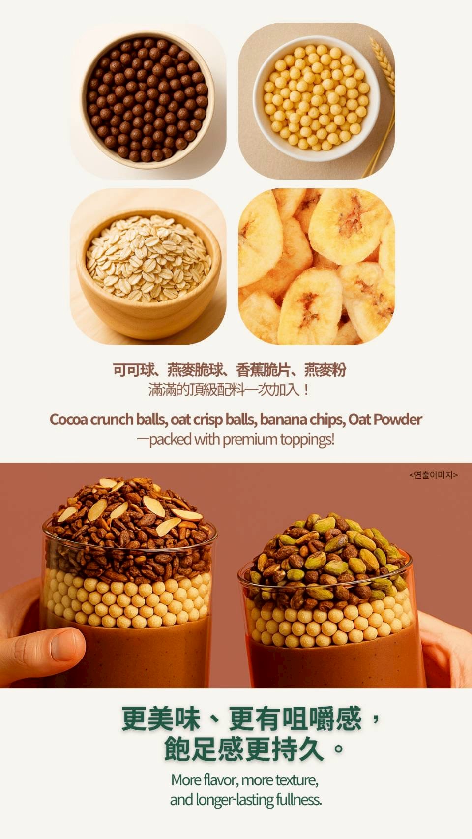 三合一配方: 蛋白質 + 膳食纖維 + 膠原蛋白,補營養同時顧好氣色與飽足感。